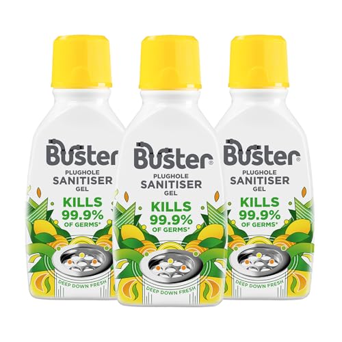 Buster Plughole Sanitiser Gel (Citrus - Pack of 3 x 300ml) Fast-Acting Sink and Drain Cleaner for Bad Smells and Stains, Kills 99.9% Germs on Drains & Stainless Steel Sinks, Fresh Scent - Made in UK