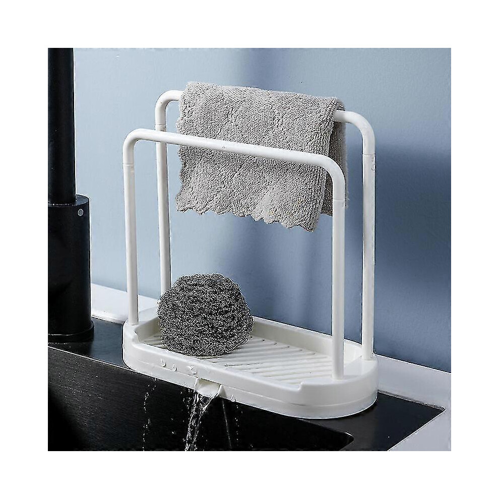 (White) Kitchen Sponge Holder, Dishcloth Hanger, 2 in 1 Tray Storage Rack with Drainer for Rag, Brush, Scrubber, Kitchen Sink Holder Tray