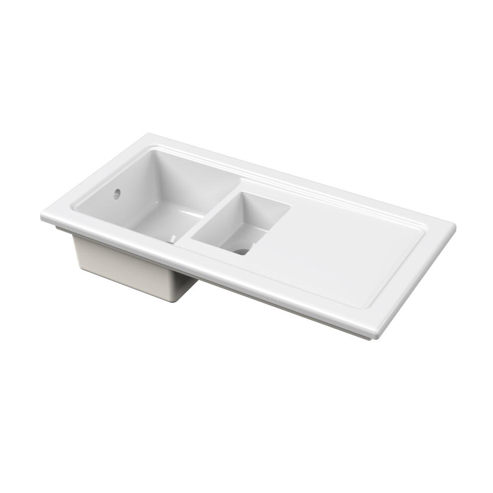Fireclay Ceramic 1.5 Bowl Kitchen Sink & Plain Drainer - 1010mm - White