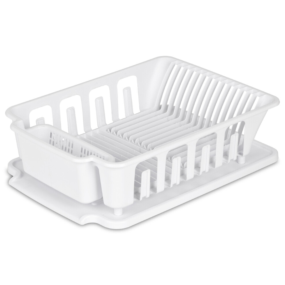 STERILITE 2-Piece Large Sink Set Dish Rack Drainer, White (18 L x 13 3/4" W x 5 1/2" H), 3/4" L x 3/4" W x