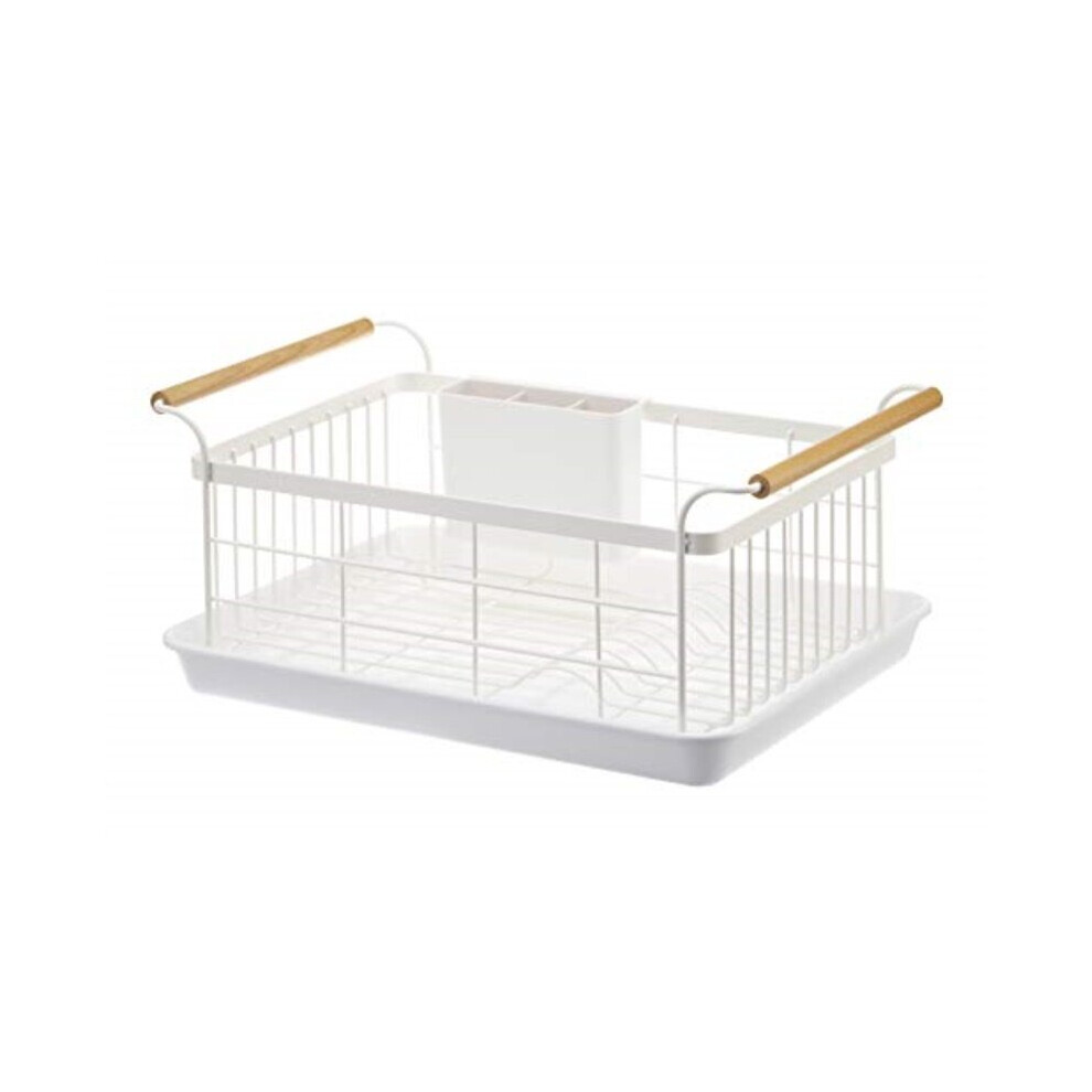 Yamazaki Home Sink Dish Rack with Removeable Drainer Tray, Kitchen Drying Organizer Holder, One Size, White Steel