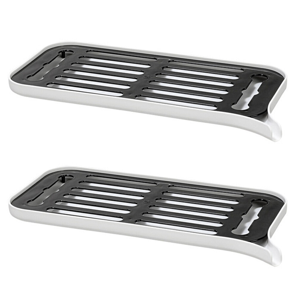 2X Plastic Dish Drainer Dryer Tray Sink Drying Rack Worktop Drain Rack Kitchen Water Filter Tray-White