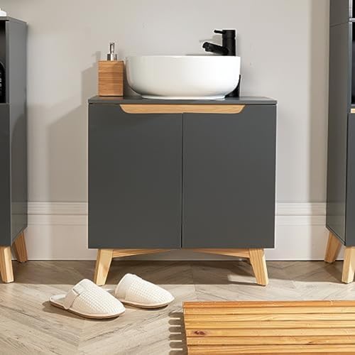 Home Source| Florence Under Sink Bathroom Storage Cabinet– Grey, 2-Door Basin Cupboard, Space-Saving Modern Furniture, Under Sink Storage 30x60x60cm