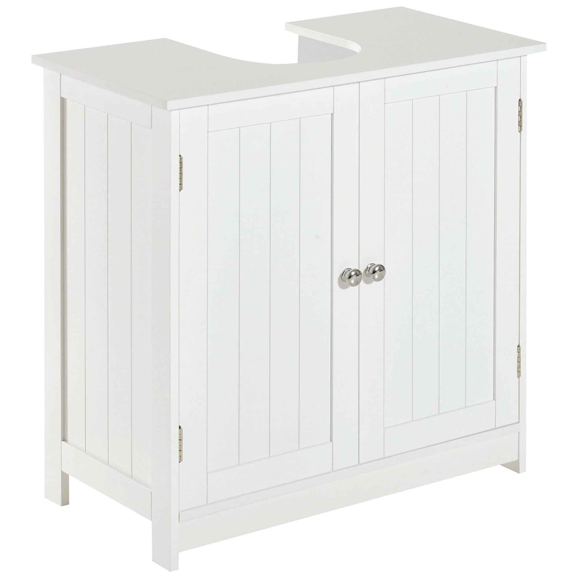 Homme Concept - White Under Sink Bathroom Storage Cabinet Free Standing 2 Doors Wooden Multi-purpose Organiser Basin Cupboard with Shelf Unit Flat Packed