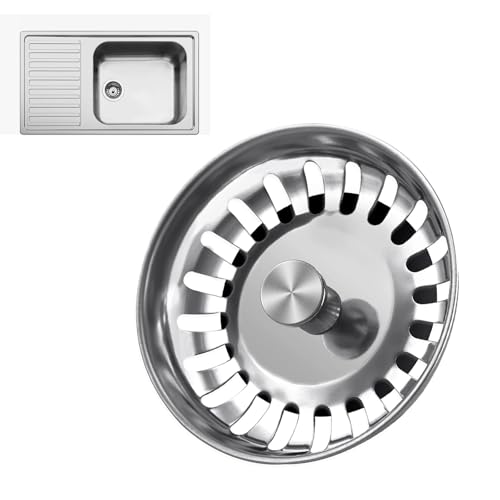 Stainless Steel Kitchen Sink Plug Strainer - Kitchen Sink Strainer, Sink Plug Replacement for Food and Hole Hair Catcher Sink Food Catcher, Sink Plugs Universal for Uk Sink Hole Diameter 78mm