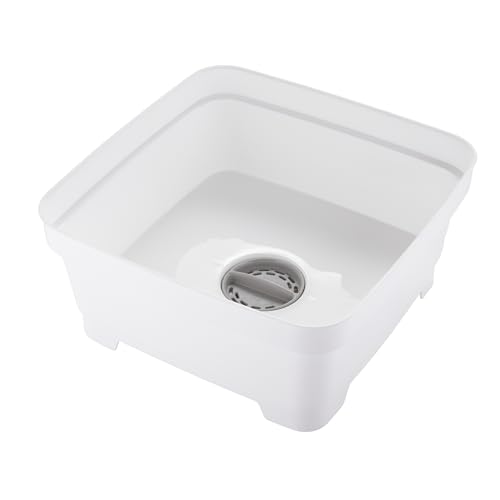 Minky Washing Up Bowl with Sink Plug Strainer, Multipurpose Square Basin, White, 11L, UK Made