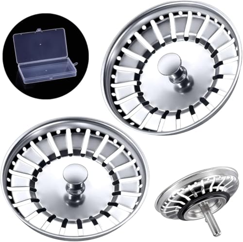 2 Pack Kitchen Sink Plug Strainer Replacement, Stainless Steel, Universal Sink P