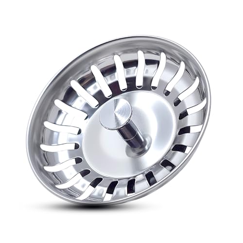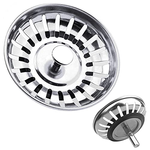 Stainless Steel Kitchen Sink Bowl Strainer and Plug, 84mm Kitchen Sink Plug for Single Double Bowl Use, Kitchen Bathroom Food Hair Catcher Filter Stopper - Prevent Clogs, Bad Smells