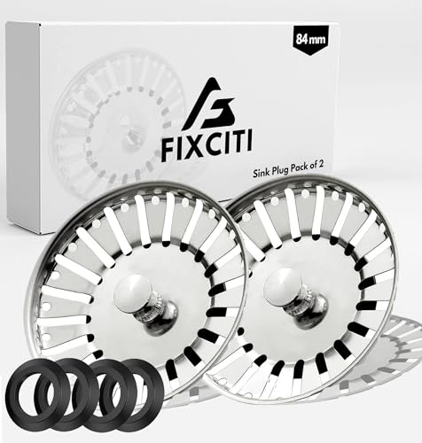 FIXCITI 84mm Sink Plug strainer - SS 304 SinkPlug Replacement with 4 Silicon Rubber Seals, Kitchen Sink-Plug (Pack of 2) - Dual Functional Kitchen Sink-Strainer plug for Food Waste/Hair Catcher