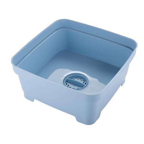 Minky Washing Up Bowl with Sink Plug Strainer, Multipurpose Square Basin, Slate Blue, 11L, UK Made