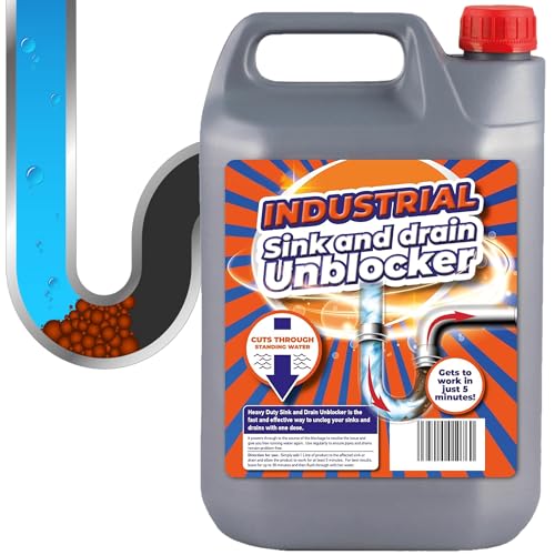 5 Litre Heavy Duty Sink & Drain Unblocker Strong Cleaning Liquid Plug Hole Toilet Cleaner Tool For Home, Office, Garage & Shops (1 x 5 Litre)