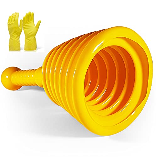 Free Flow Sink and Shower Plunger with Cleaning Gloves - for Unblocking Basin, Kitchen Sink & Bath Drains; Heavy Duty Drain Unblocker Tool for Commercial and Home Use - Yellow