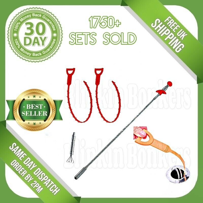2+1 DRAIN UNBLOCKER STICK SNAKE CLEANER HAIR CLOG REMOVER TOOL SINK SHOWER BATH