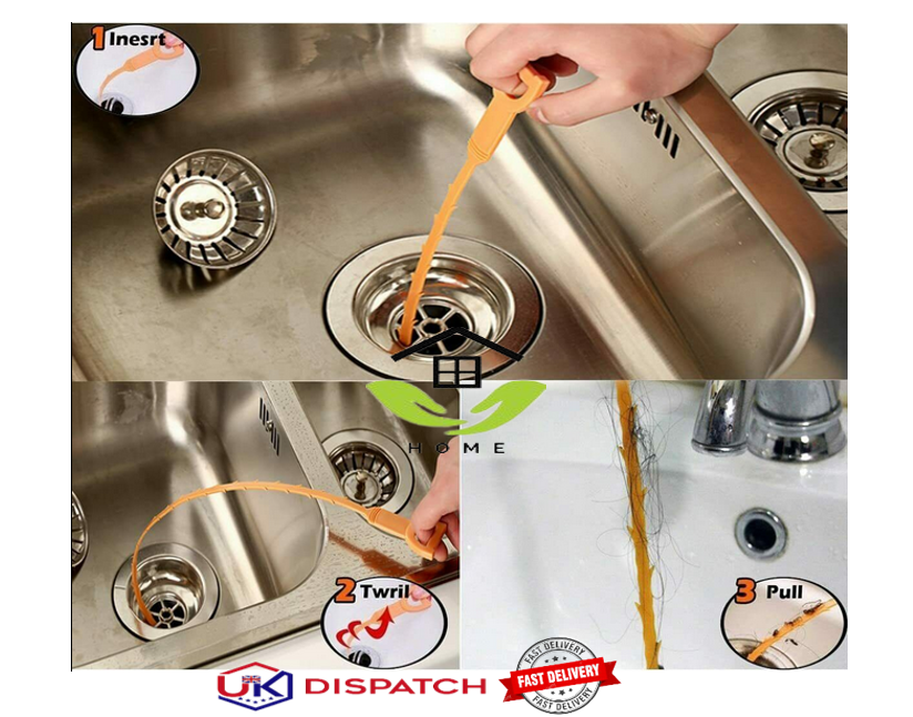 Drain Unblocker Snake U-Bend,Hair Remover Cleaner Sink Tool Shower Bath Clog.