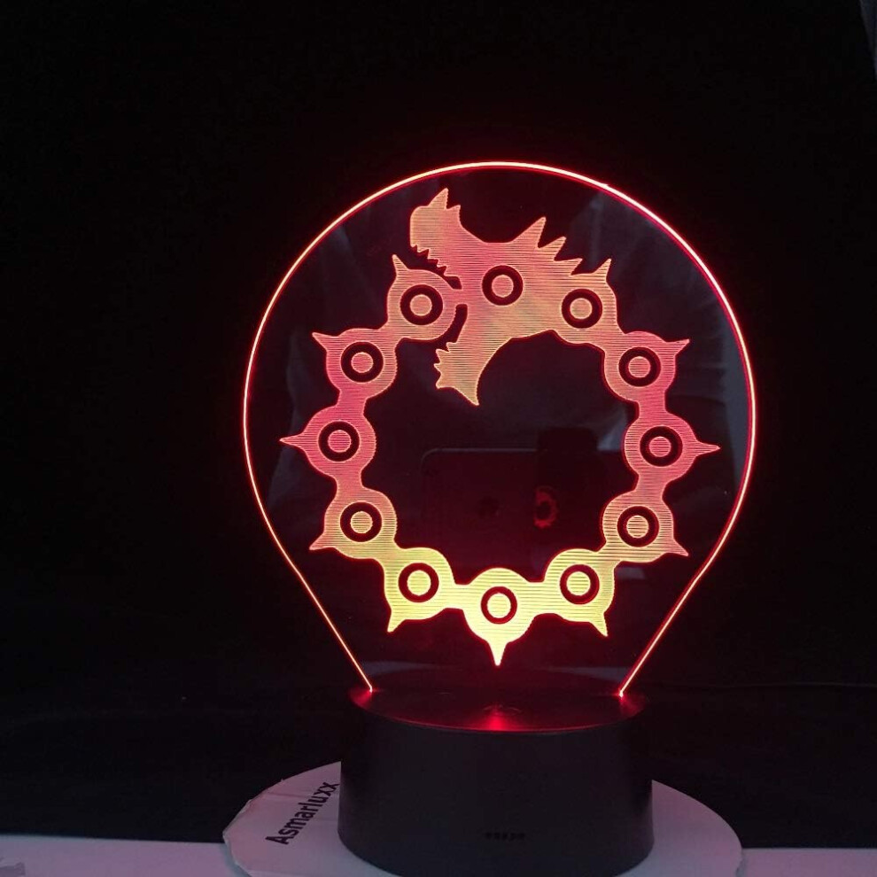 Anime Lamp Illusion Light LED Night Light Lamp Escanor Seven Deadly Sins Ban Meliodas dragón Wraith Fox codicia OSO Grizzly 3D for Kid