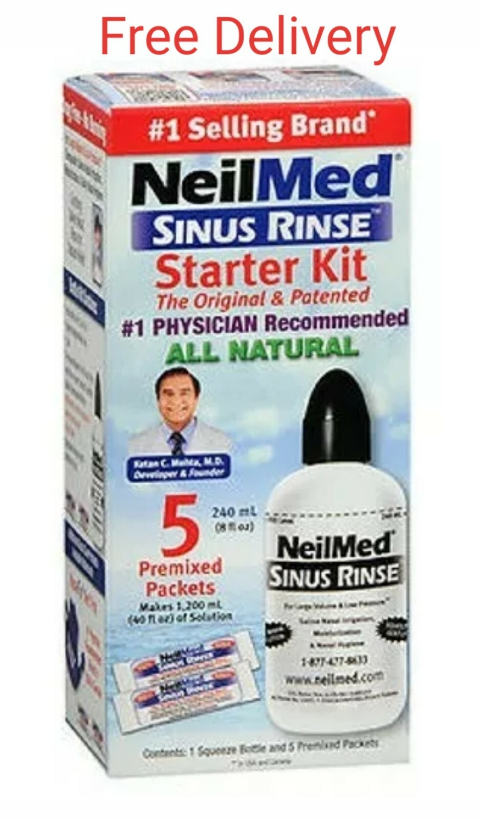 NeilMed Sinus Rinse Starter Kit Natural 10 Sachets with Bottle New & Free Delive