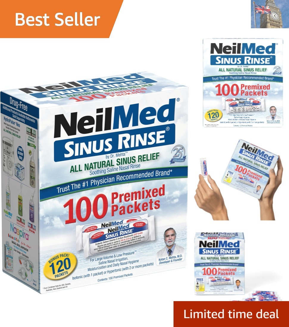 120 Sachet Sinus Rinse Kit - Natural Relief for Nasal Stuffiness & Pressure