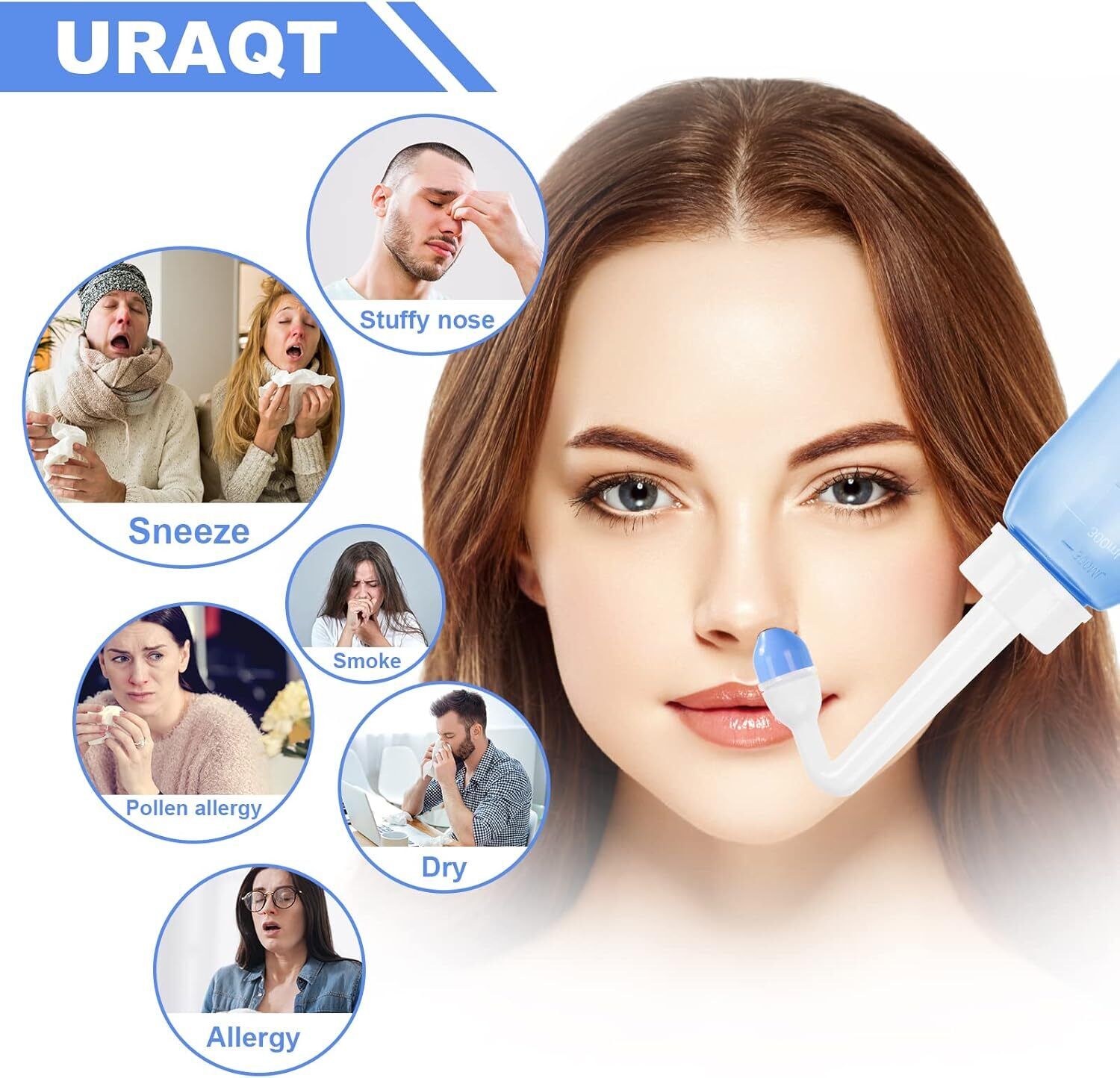 URAQT Neti Pot, 2 PCS Nasal Rinse Kit Nose Wash Cleaner, 300ml Sinus Rinse Bottle, Pressure Rinse Nasal Irrigation for Adult and Kid BPA Free