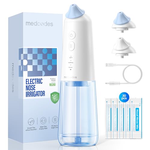 Medcodes Nasal Irrigation System, Cordless Pulsating Sinus Rinse Bottle, Nasal Rinse Machine for Sinus & Nasal Care, Electric Neti Pot Nose Cleaner (Large A)