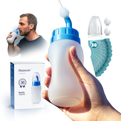 MAOEVER Neti Pot Sinus Rinse Squeeze Bottle Nose Wash Cleaner Pressure Rinse Nasal Irrigation for Adult & Kid BPA Free 300 ML with 30 Nasal Wash Salt Packets(Blue)