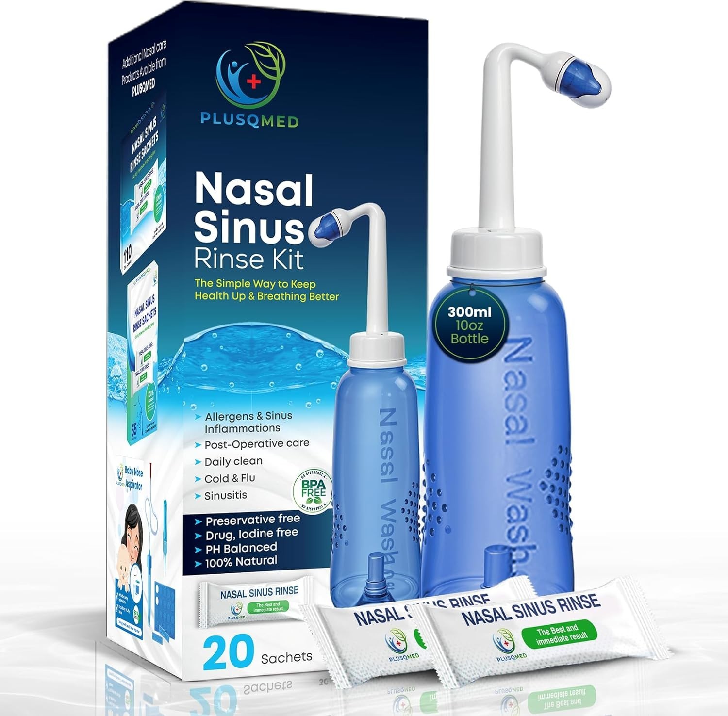 Sinus Rinse Kit, Squeeze Bottle, Neti Pot,+20 Salt sachets, Original Plusqmed,Nasal wash, Sinus Rinse, Adults, Children, Nose Shower for Nose Cleaning and Nasal Flushing,
