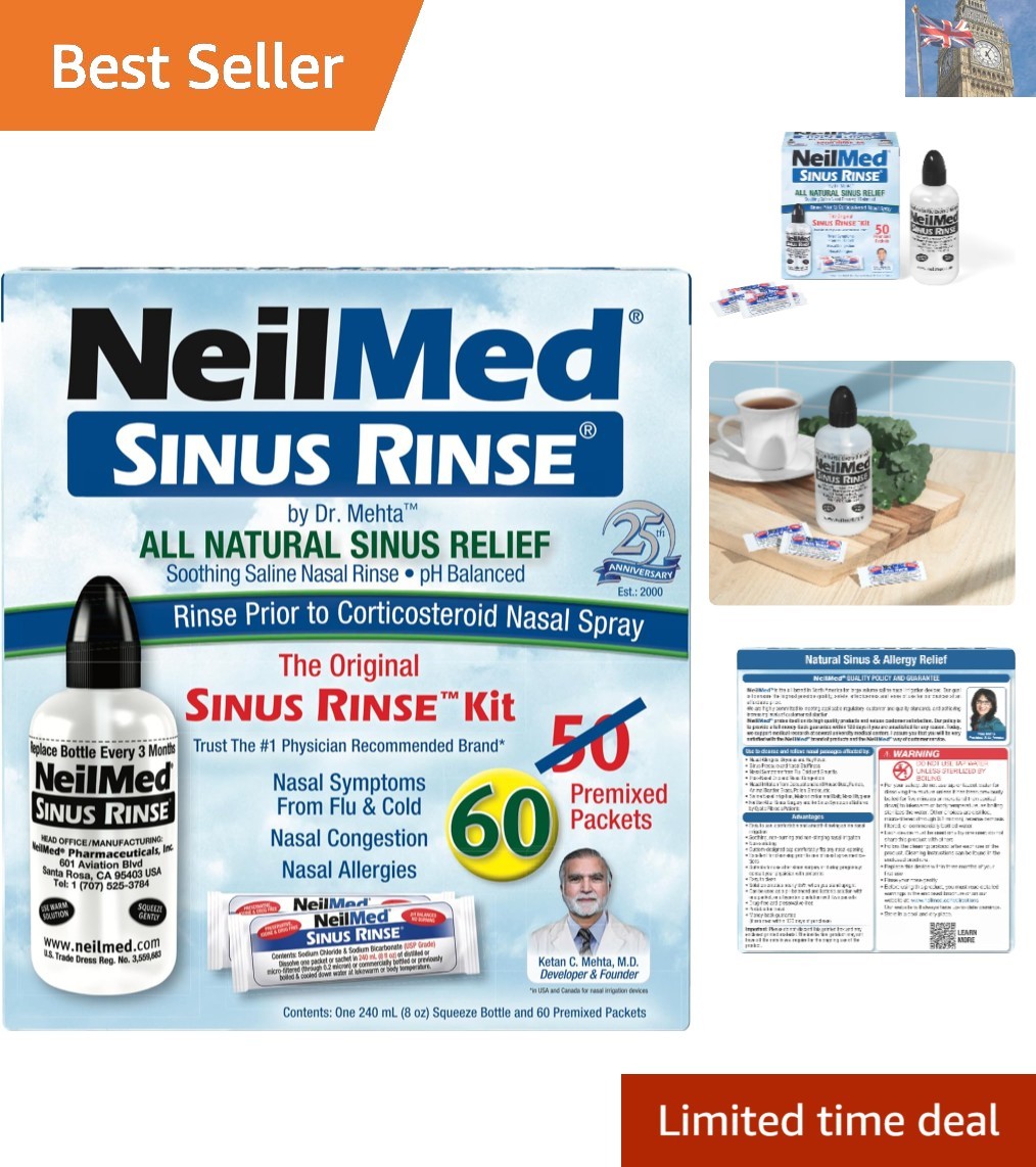 Effective Nasal Relief Sinus Rinse Kit with 60 Premixed Sachets – Easy Use