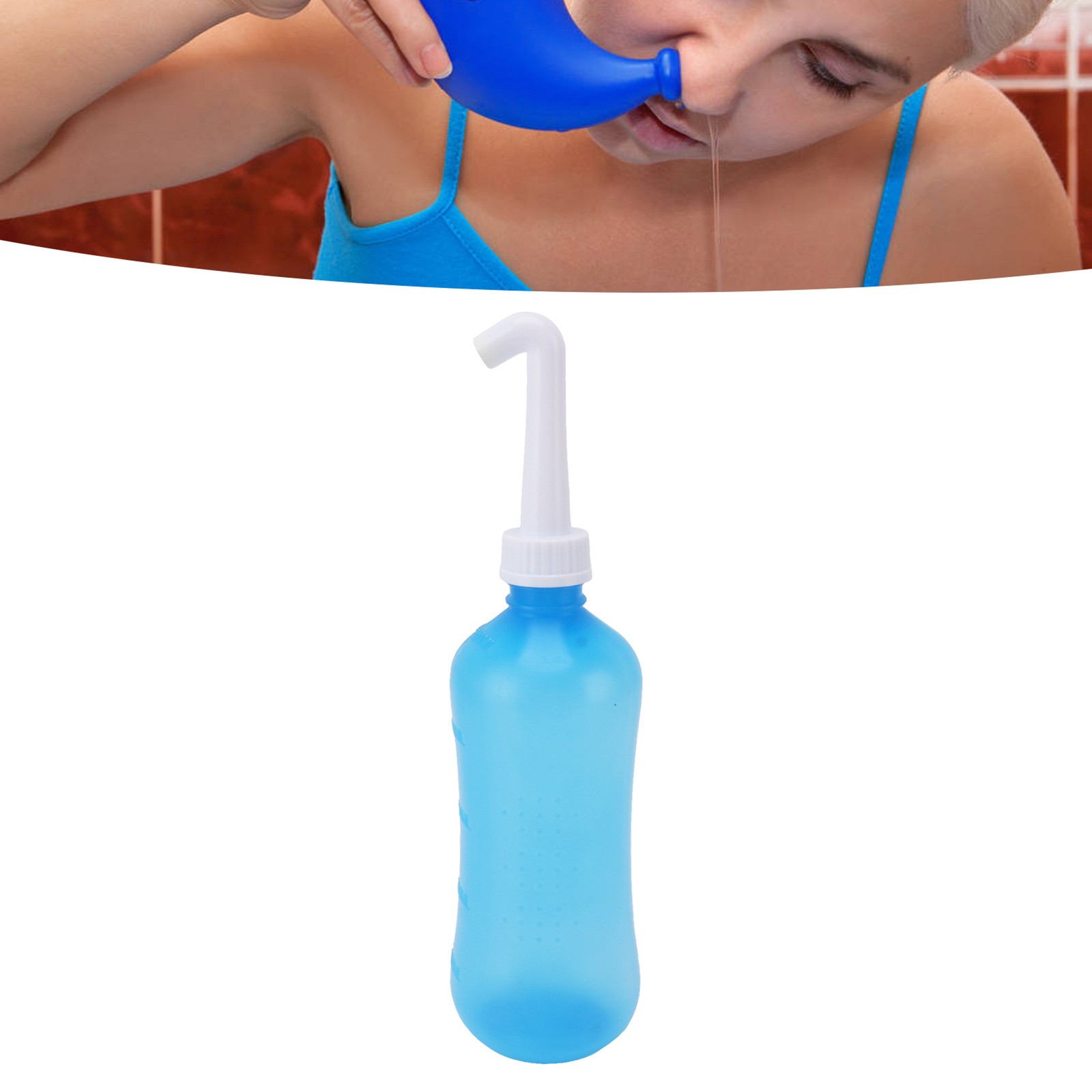 500ML Blue Neti Pot Sinus Rinse Bottle Silicone ABS Manual Nose Wash Cleane SG