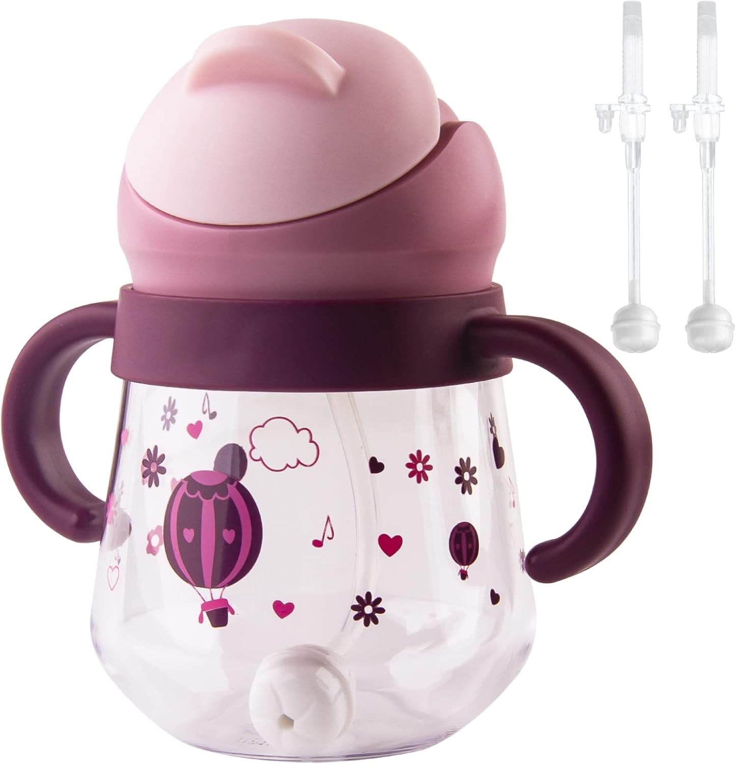 Sippy Cup for Baby 6+, Weighted Straw Non-Spill Cup with Handles, Leak-Proof, 2