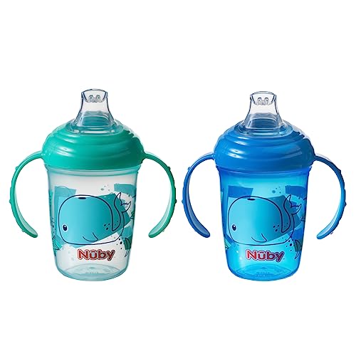 Nuby Grip N Sip Water Bottle - No Spill Sippy Cup | 240ml / 8oz | Twin Handle | Dishwasher and Microwave Safe | Suitable Beaker for 4 Months Plus, Whales, 240 ml (Pack of 2)