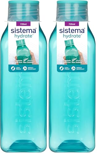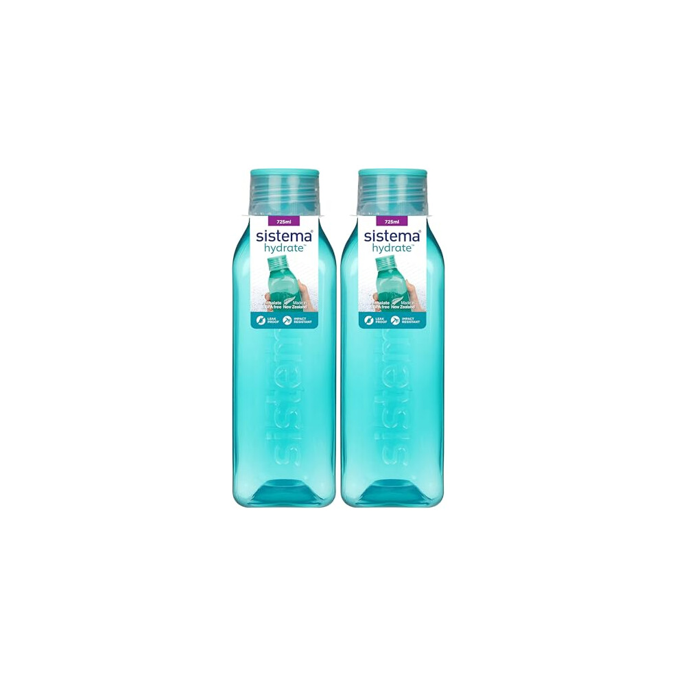 Sistema Square Water Bottle 725 ml BPA Free Water Bottle Seal Tight Lid Easy Grip Sides Any one Assorted Colours Pack of 2