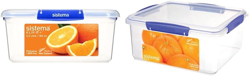 Sistema KLIP IT PLUS Food Storage Containers | 3.35 L | Leak-Proof, Stackable & Airtight Fridge & KLIP IT PLUS Food Storage Container | 5.5 L Square | Stackable & Airtight Fridge/Freezer