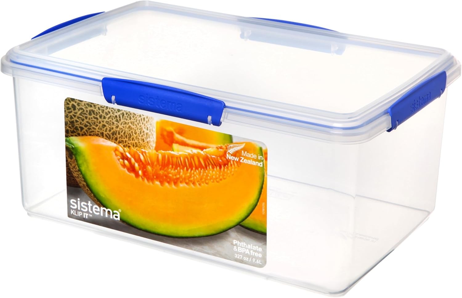 Sistema KLIP IT Food Storage Container | 9.6 L | Stackable & Airtight Fridge/Freezer Food Box with Lid | BPA-Free Plastic | Blue Clips | 1 Count