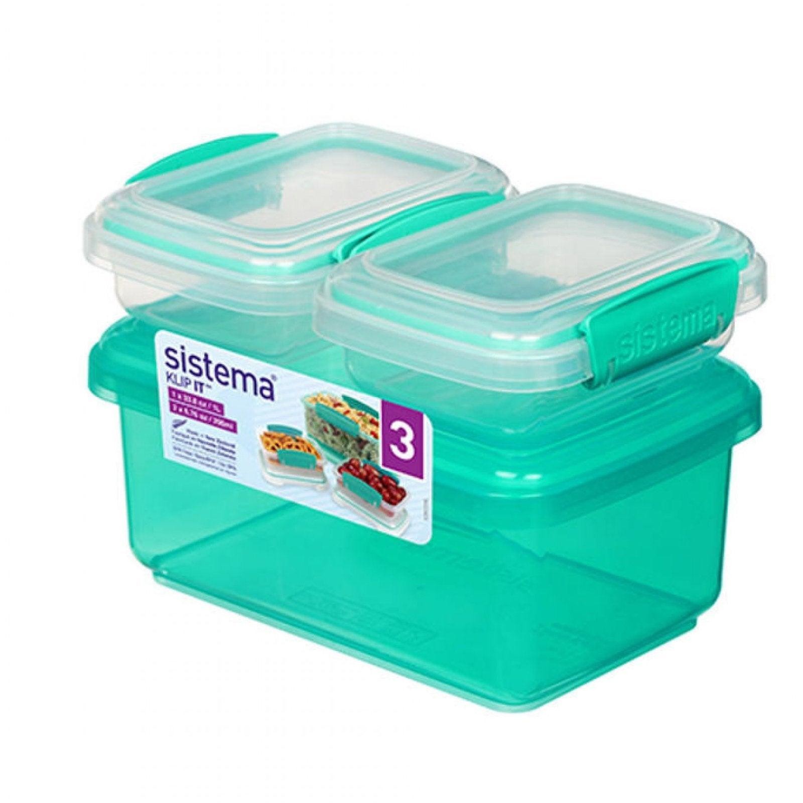 Sistema Klip It 3 Piece Food Storage Container Set Teal Clip Lid Boxes