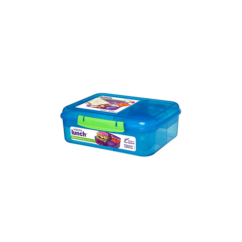 Sistema Bento Box LUNCH | Bento School Lunch Box with Compartments | 1.65 L | Food Storage Container in Assorted Colours (Varies by Pack) | 1 Count (Pack of 2)