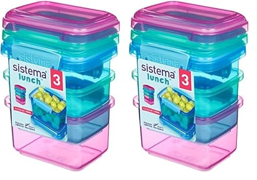 Sistema Lunch Food Storage Containers | 400 ml | Small Snack Pots | BPA-Free Plastic | Assorted Colours | 3 Count (Pack of 2)