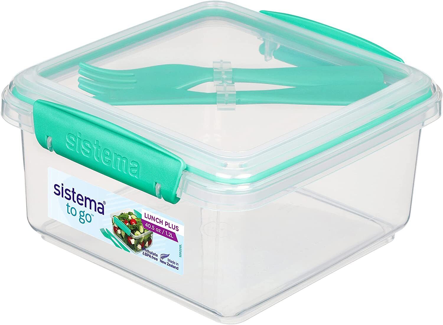 Sistema Lunch Plus To Go 1.2L green with cutlery lunch salad sandwiches box #E