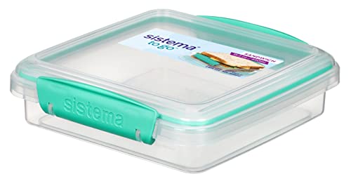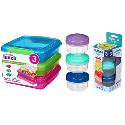 Sistema Lunch Sandwich Boxes | 450 ml Food Storage Containers | BPA-Free | Assorted Colours | 3 Count & to Go Mini Bites | 130 ml | Assorted Colours | 3 Count