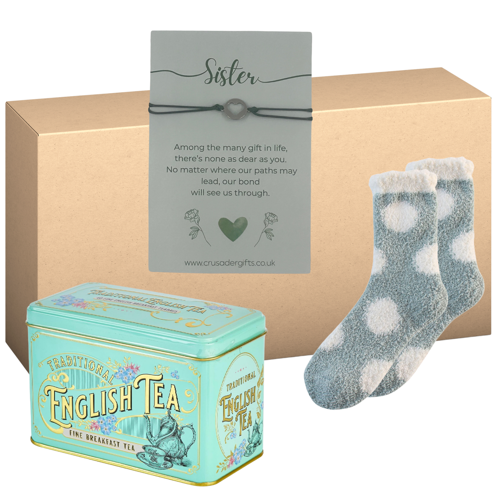 Sister - Bracelet Keepsake Traditional English Tea & Cosy Socks Gift Set