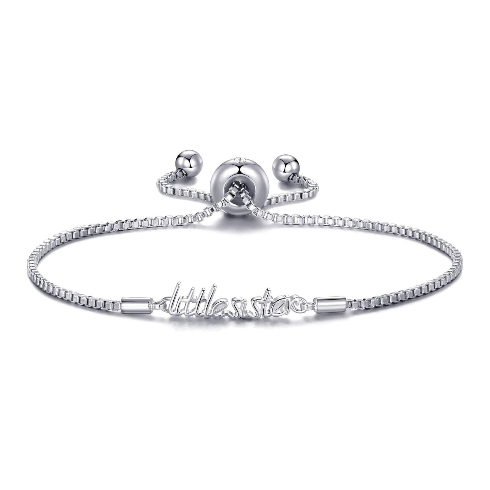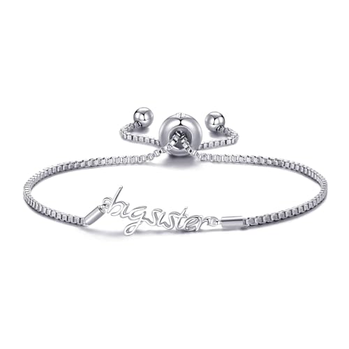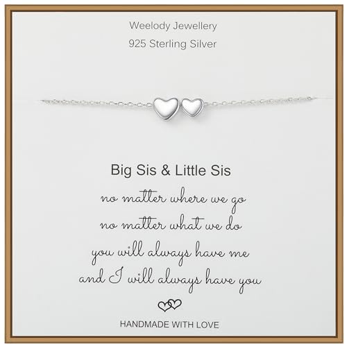 Weelody Big Sis Little Sis Bracelet, 925 Sterling Silver Heart Bracelet, Sister Gifts from Sister, Birthday Gifts for Her