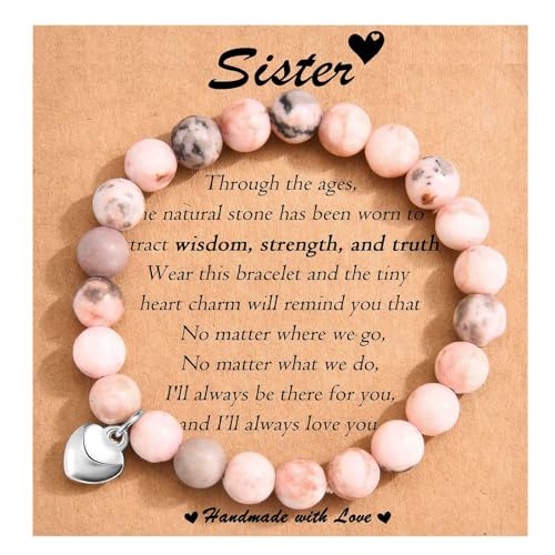 TEVOP Sister Bracelet Gifts, Sister Birthday Gifts, Natural Stones Heart Charm Jewellery for Christmas Mother’s Day Graduation