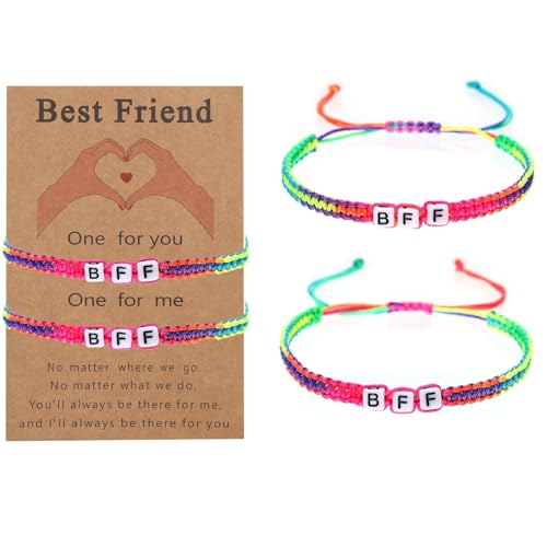 2 Pcs BFF Braided Bracelets for 2 Girls Hand Braided Colorful Best Friend Matching Bracelet Sister Friendship Rope Long Distance Matching Bracelets for Graduation Birthday School starts Gift