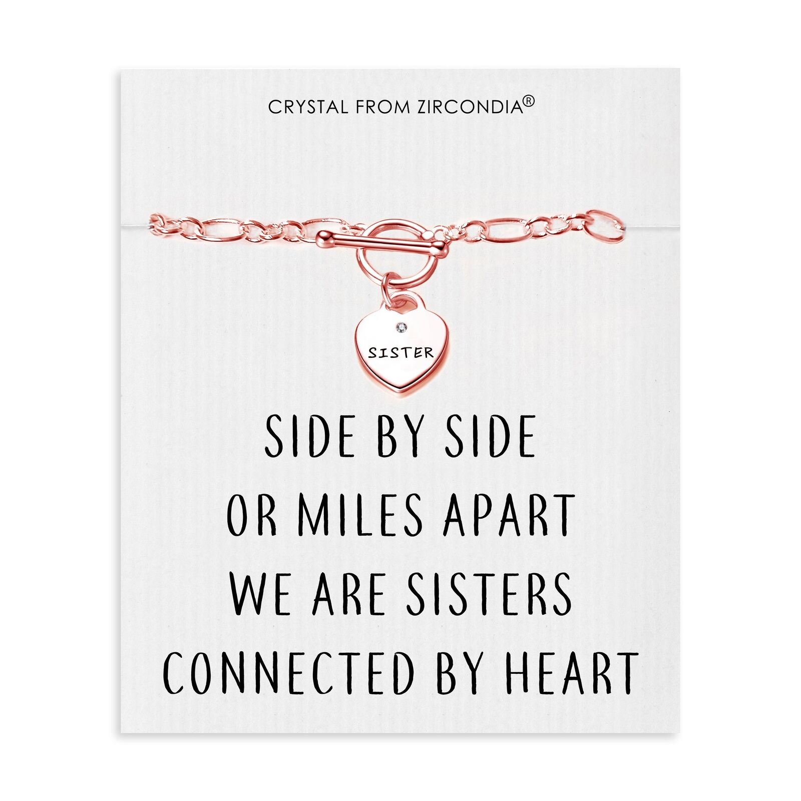 Rose Gold Plated Sister Charm Bracelet with Quote Card Created with Zircondia® C