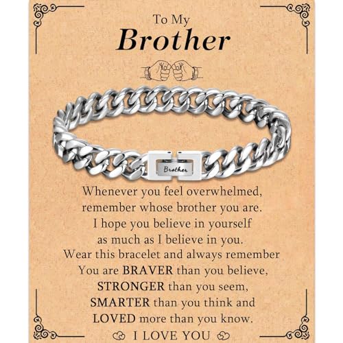 TEVOP Gifts for Brother, Engraved Bracelet Brother Gifts from Sister, Cuban Chain Bracelet for Men Boys, Presents for Birthday Christmas Graduation