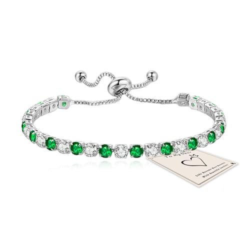 Sterling Silver Tennis Bracelets Green Bracelets for Women, Silver Crystal Sister Friendship Green Bracelet, Adjustable Diamond Cubic Zircona Ladies Bracelet Birthday Gifts for Mum Her Girls