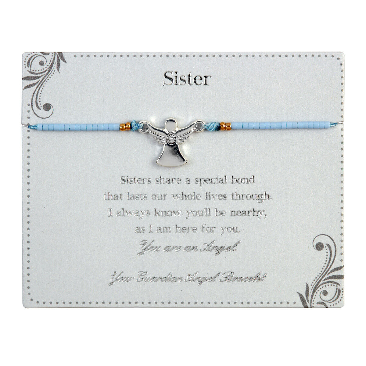 Sister Guardian Angel Bracelet On Beaded String With Envelope Gift Idea