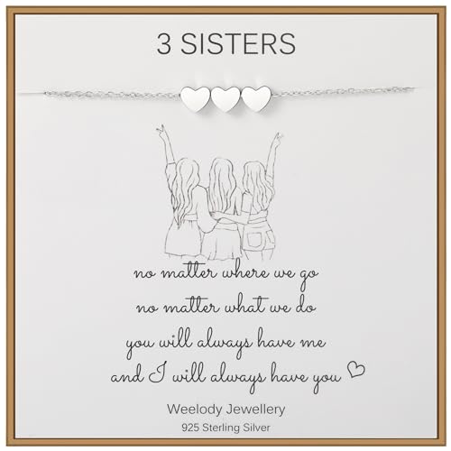Weelody 3 Sisters Bracelet, 925 Sterling Silver 3 Heart Bracelet, Sister Gifts from Sister