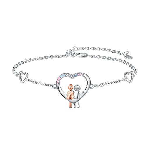 Sister Bracelet 925 Sterling Sliver Adjustable Heart Bracelet Sister Friendship Gifts for Women Girls
