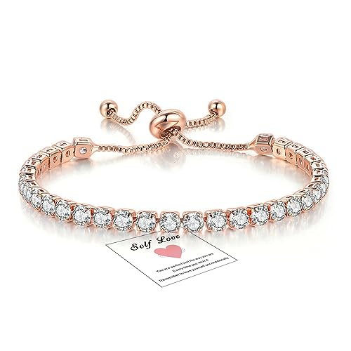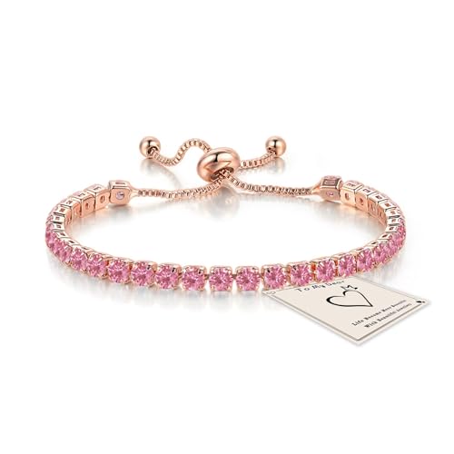 HEEYA Rose Gold Tennis Bracelets, Sterling Silver Tennis Bracelets for Women, Silver Crystal Sister Friendship Pink Bracelet, Adjustable Diamond Cubic Zircona Lady Bracelet Birthday Gifts