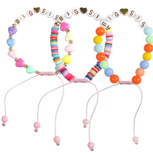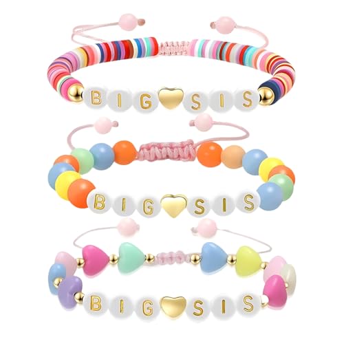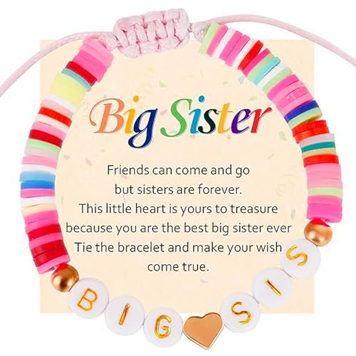 Big Sister Bracelet,Big Sister Gifts from Little Sisters,Colourful Adjustable Clay Beads Bracelet,Pink Letter Beads Bracelets,Promoted to big Sisters Bracelets Gifts, Daughter Birthday Gift from Mom