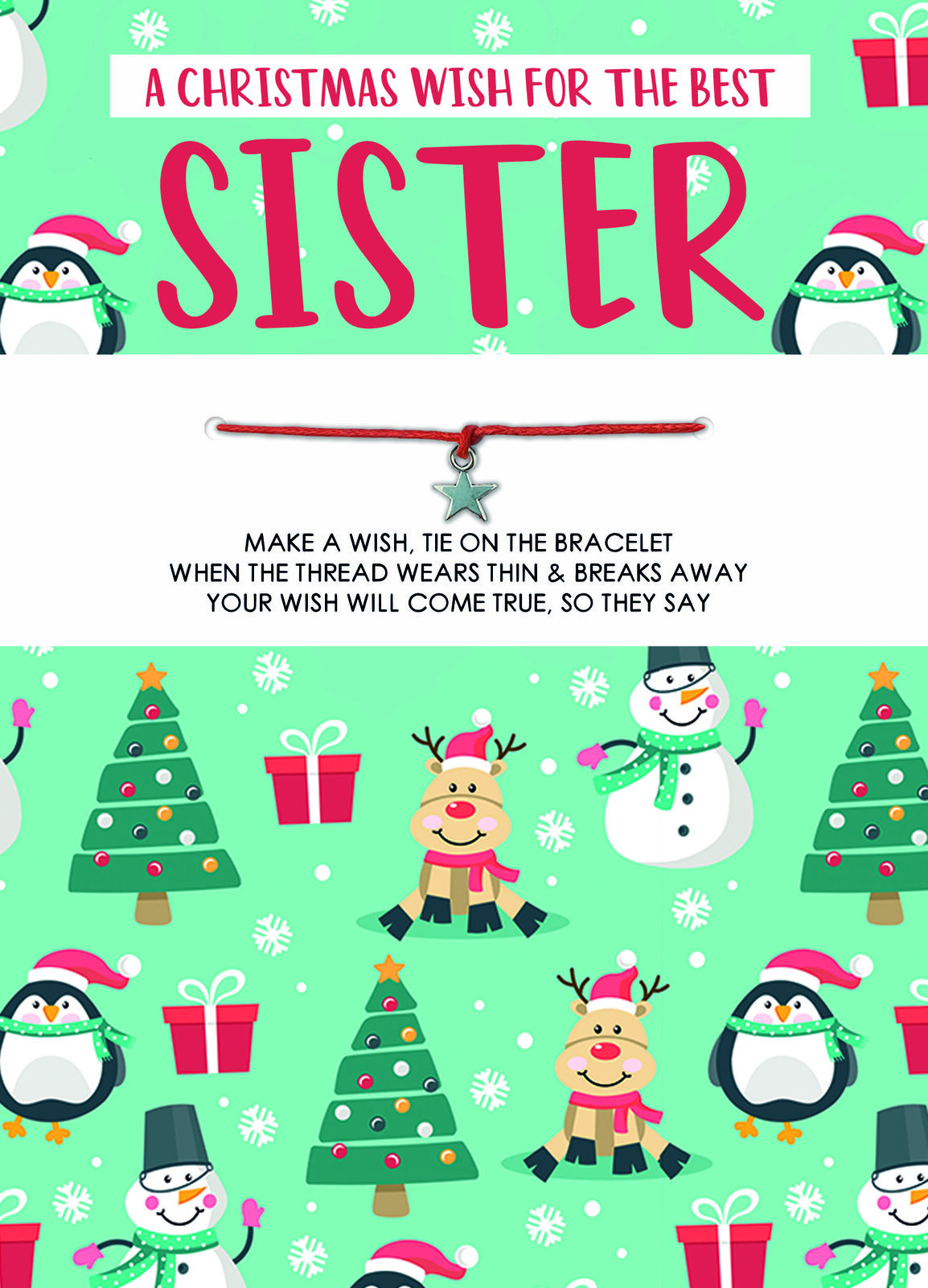 Cards 'n' Wishes Best Sister Wishstring Bracelet & Christmas Card Xmas Cards